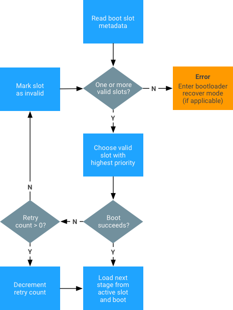 Los fabricantes de equipos originales y los proveedores de SoC que deseen implementar actualizaciones del sistema A/B deben asegurarse de que su cargador de arranque implemente boot_control HAL y pase los parámetros correctos al kernel.