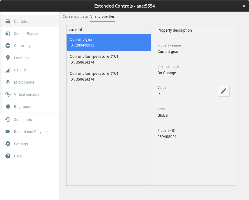 The Android Automotive OS (AAOS) contains common VHAL properties that can be viewed in an emulator's VHAL window. As a result, you can view an abundance of information about VHALs including names, descriptions, and the meaning of the values. The information is extracted from the metadata of VHAL properties, which is hard-coded into the QEMU emulator.