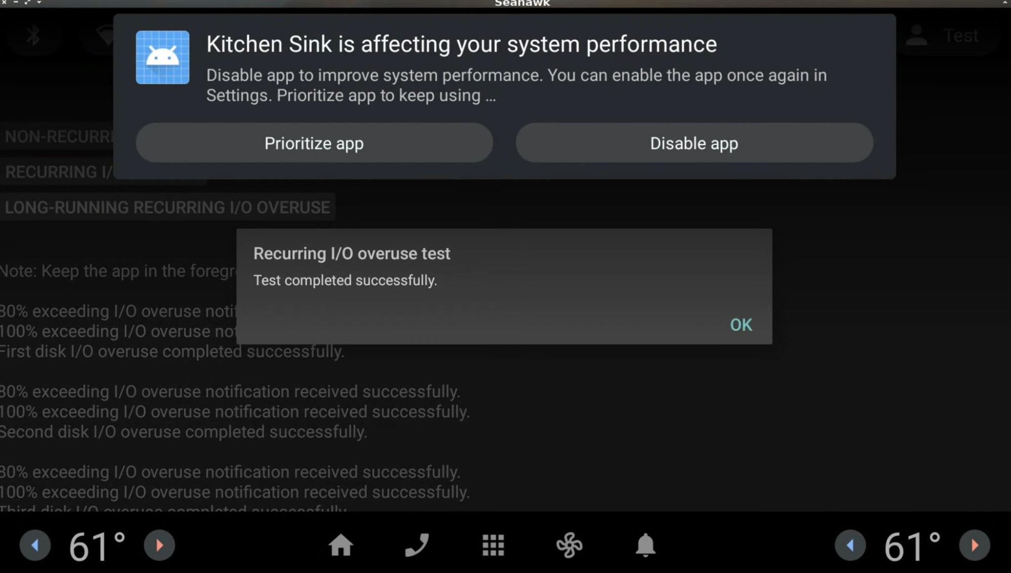 如果應用程式或服務在特定時間內重複過度使用磁碟 I/O (例如寫入磁碟的資料超出定義的門檻),且可因資源用量過度而安全終止,系統會在車輛進入允許駕駛人分心狀態後通知使用者。