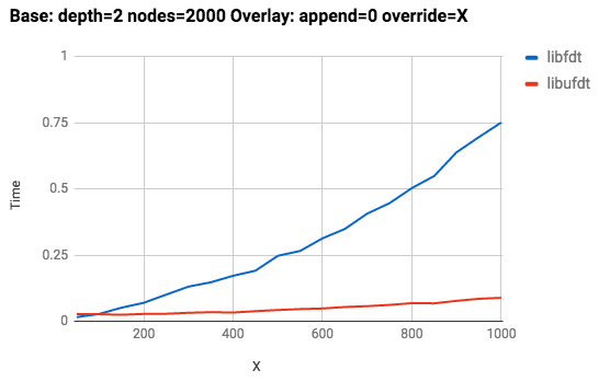 গুগলের অভ্যন্তরীণ পরীক্ষায়, 2405 .dtb এবং 283 .dtbo DT নোডগুলিতে libufdt ব্যবহার করলে সংকলনের পরে ফাইলের আকার 70,618 এবং 8,566 বাইট হয়। FreeBSD (124 ms রানটাইম) থেকে পোর্ট করা একটি DTO বাস্তবায়নের সাথে তুলনা করে, libufdt DTO রানটাইম হল 10 ms।