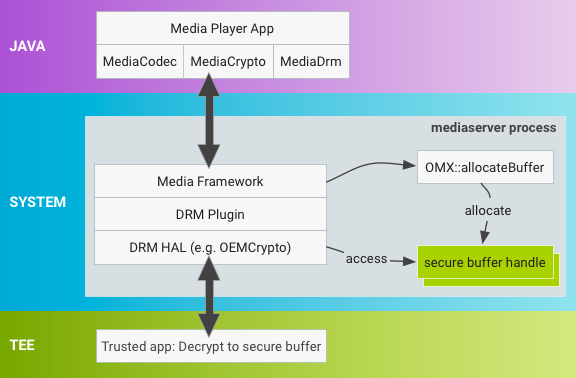 Figure 3. Android 7.0 and higher buffer allocation in mediaserver.
