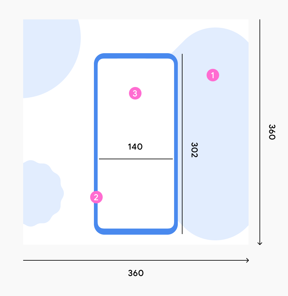 Se você optar por adaptar o estilo do Material You, use as cores e formas padrão mostradas no exemplo.