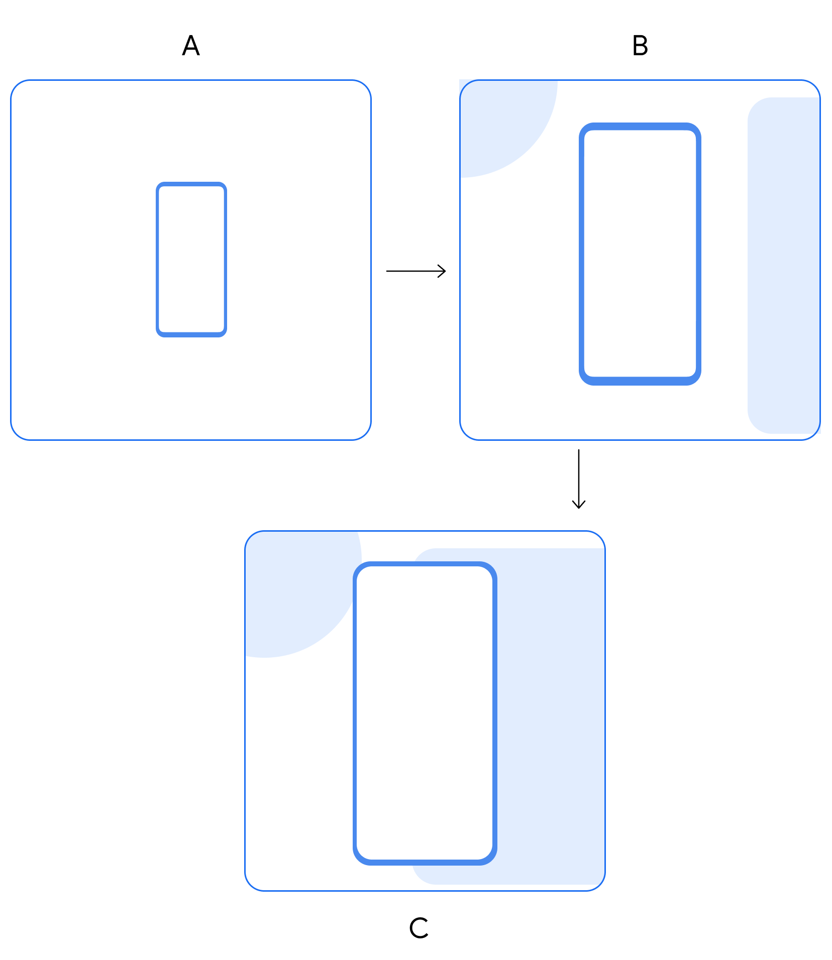 - يتحرّك الهاتف إلى المنتصف مع زيادة حجمه. تبدأ الأشكال في الظهور على الشاشة.