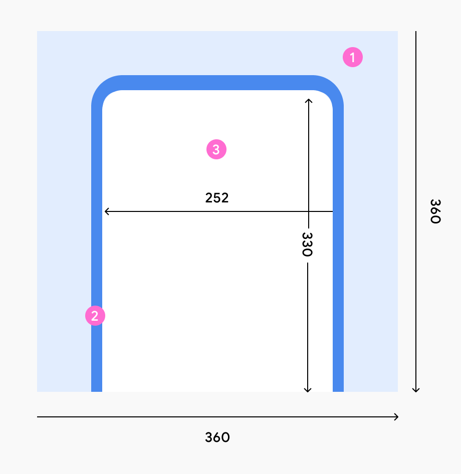 Si vous choisissez d'adapter le style Material You, vous pouvez utiliser les couleurs et les formes par défaut indiquées dans l'exemple.
