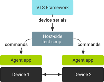 VTS از تست هایی پشتیبانی می کند که نیاز به تعامل بین چندین دستگاه اندرویدی دارند.