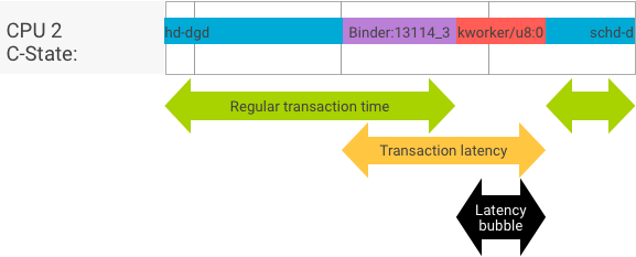 בדיקת הקצב של העברת הנתונים מתבצעת מול קצב העברת הנתונים של עסקאות ב-binder/hwbinder. במערכת שלא עמוסה, בועות זמן אחזור הן נדירות וניתן למזער את ההשפעה שלהן כל עוד מספר החזרות מספיק גבוה.