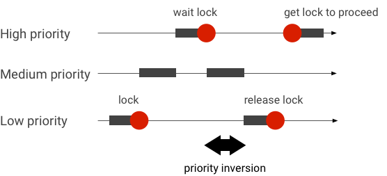 היפוך עדיפות מתרחש כששרשור עם עדיפות גבוהה יותר ממתין באופן לוגי לשרשור עם עדיפות נמוכה יותר. באפליקציות בזמן אמת (RT) יש בעיה של היפוך תעדוף: