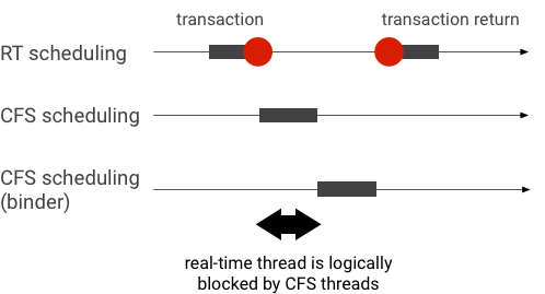 דוגמה להיפוך עדיפות במהלך עסקה של Binder (שרשור RT חסום באופן לוגי על ידי שרשורי CFS אחרים בזמן ההמתנה לשירות של שרשור Binder):
