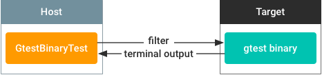 VTS-এ, ডিফল্ট পরীক্ষার বিন্যাস হল হোস্ট-সাইড পাইথন পরীক্ষা VTS রানারে বেসটেস্ট থেকে প্রসারিত। টার্গেট-সাইড টেস্টগুলিকে একীভূত করতে, আপনাকে প্রথমে টেস্ট ফাইলগুলিকে ডিভাইসে পুশ করতে হবে, শেল কমান্ড ব্যবহার করে পরীক্ষাগুলি চালাতে হবে, তারপর হোস্ট-সাইড পাইথন স্ক্রিপ্টগুলি ব্যবহার করে ফলাফলগুলি পার্স করতে হবে।
