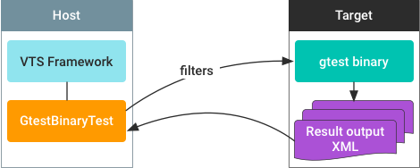BinaryTest 템플릿을 사용하면 대상 기기에서 실행되는 테스트를 VTS에 통합할 수 있습니다. 타겟 측 테스트에는 다음이 포함됩니다.