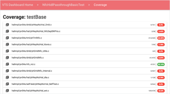 VTS kontrol paneli, test sonuçları, profil oluşturma ve kapsam hakkındaki bilgileri etkili bir şekilde görüntülemek için Materyal Tasarım'ı kullanan uyumlu bir kullanıcı arayüzü sağlar. Kontrol paneli stili, Google App Engine'da Java servlet'leri tarafından sağlanan verileri işlemek için MaterializeCSS ve jQueryUI gibi açık kaynak JavaScript kitaplıklarını kullanır.