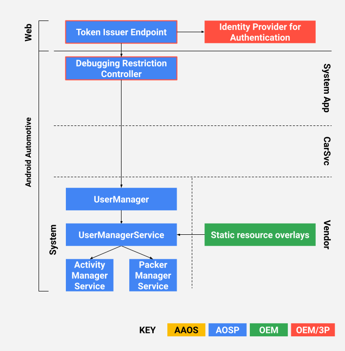 Sesuai dengan Dokumen Definisi Kompatibilitas Android, OEM harus menyediakan cara untuk mengaktifkan pengembangan aplikasi. Namun, menyediakan opsi developer seperti perangkat seluler di dalam mobil akan membuat mobil tersebut rentan terhadap serangan. Akses ke opsi developer kini dapat dibatasi oleh OEM menggunakan mekanisme token kriptografis yang diautentikasi. Secara khusus, OEM dapat: